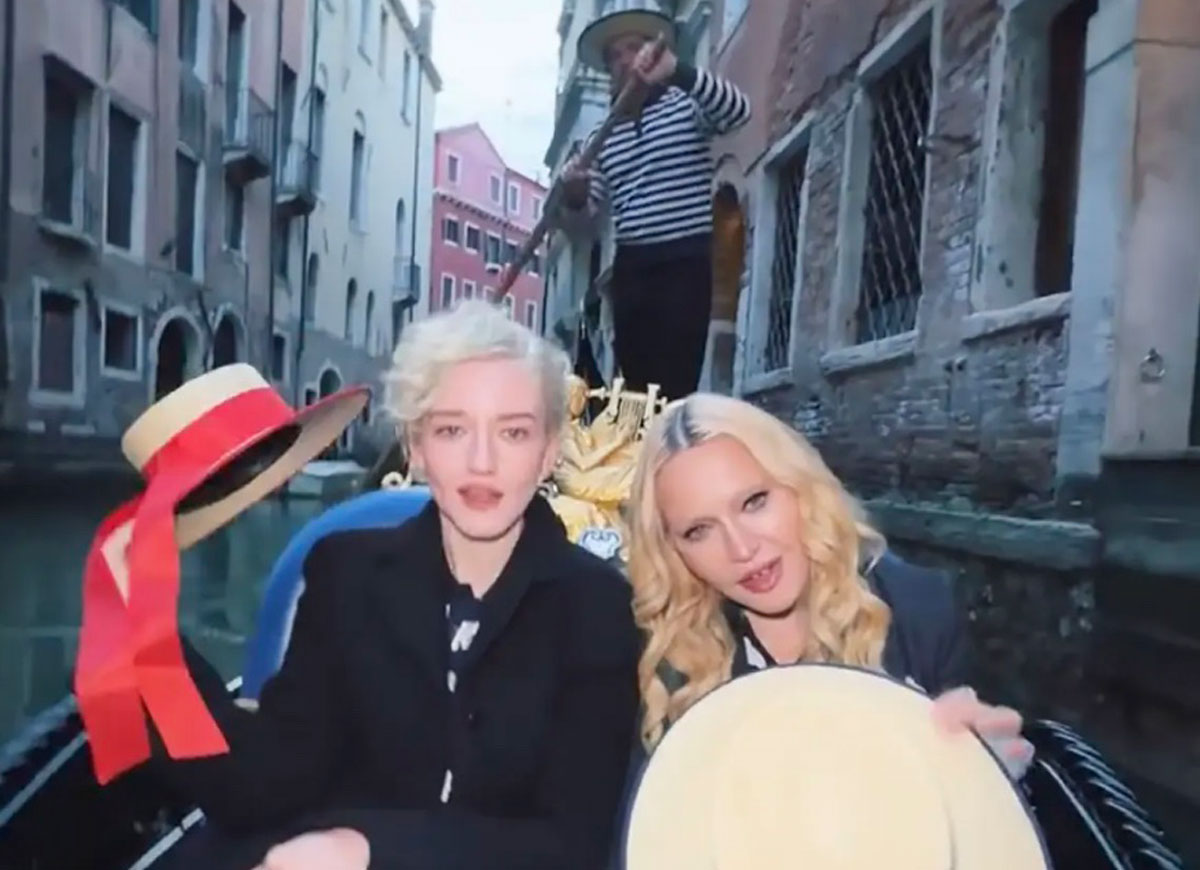 Madonna & Julia Garner wear matching outfits as they ride gondola through Venice (Image: Instagram)
